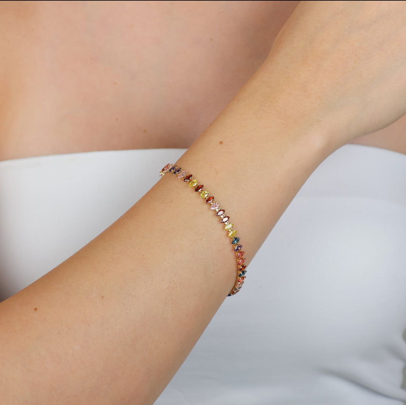 A Pulseira Zircônia Colorida by FloraeHelena é a escolha perfeita para quem busca alegria e sofisticação em uma única peça.